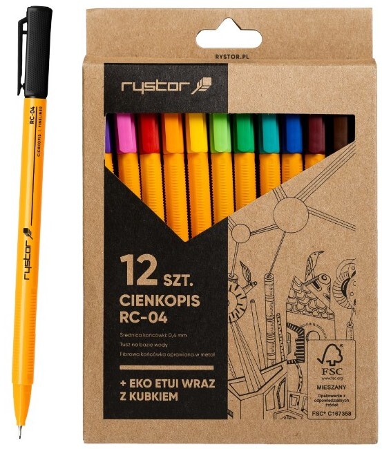 Flamastry Eco kpl. 12-kol. w etui RC-10, Rystor