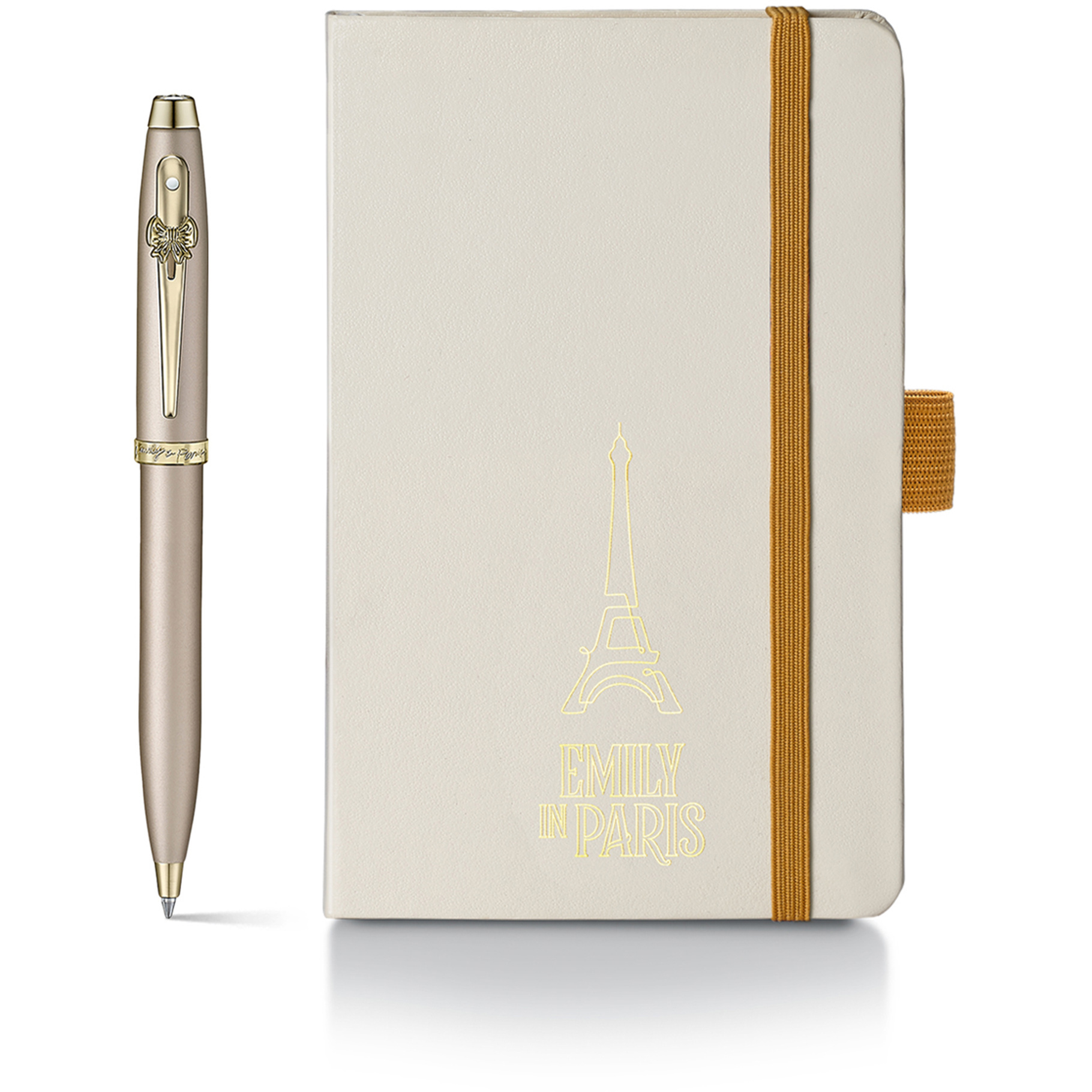 Kuličkové pero Sheaffer 100 Champagne Gold se zářivými ozdobami a charakteristickým emblémem ve tvaru mašle se krásně hodí k kompaktnímu zápisníku s pevnou vazbou. Tato elegantní sada s emblémem inspirovaným seriálem Emily in Paris je ideální pro stylové zaznamenávání myšlenek – ať už u stolu... weiter lesen