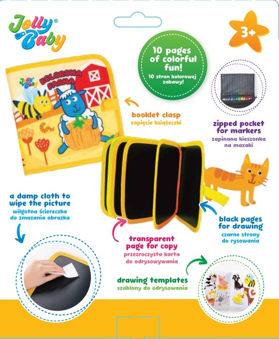 JOLLYBABY JB 82601 Książeczka do rysowania kolorowa farma
