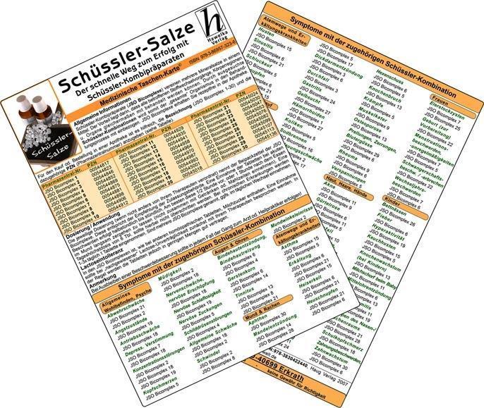 Schüssler-Salze - Der schnelle Weg zum Erfolg mit Schüssler-Kombipräparaten, Medizinische Taschen-Karte