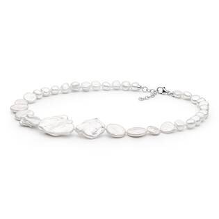 GA3052 Stříbrný náhrdelník s plochými nepravidelnými perlami