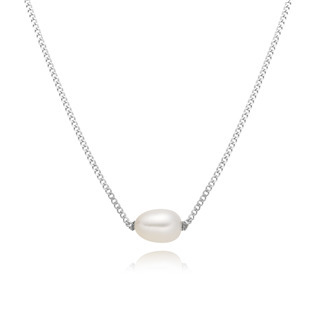 Stříbrný náhrdelník dekorovaný jednou oválnou přírodní perlou bílé barvy