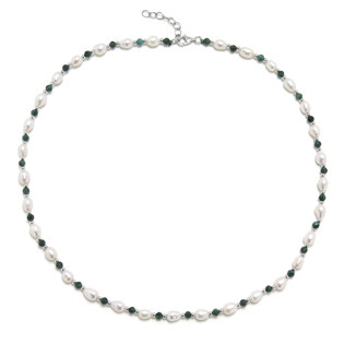 AU1001 Minerální náhrdelník přírodní Malachit a perly, stříbro AG925