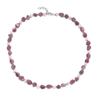 AU0006 Minerální náhrdelník přírodní Turmalín a perličky, stříbro AG925