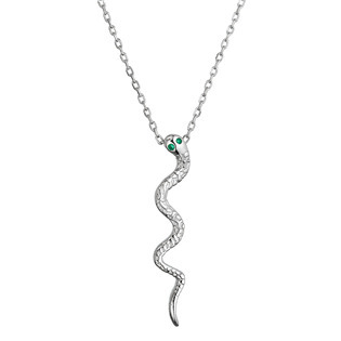 EG1442 Stříbrný náhrdelník had se zelenými zirkony - zvířátka