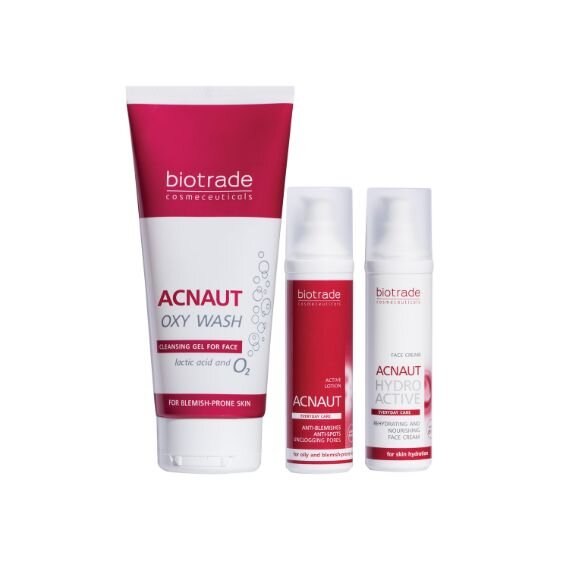 Sada péče o aknózní pleť (čistící gel + pleťová voda + krém) Acnaut BiotradeAcnaut Oxy Wash Gel – Jemný čistící gel na obličej a těloAcnaut Oxy Wash Gel je speciálně vyvinutý čistící gel pro smíšenou a mastnou pleť se sklony k nedokonalostem, který kombinuje sílu kyseliny mléčné a 99,9%...