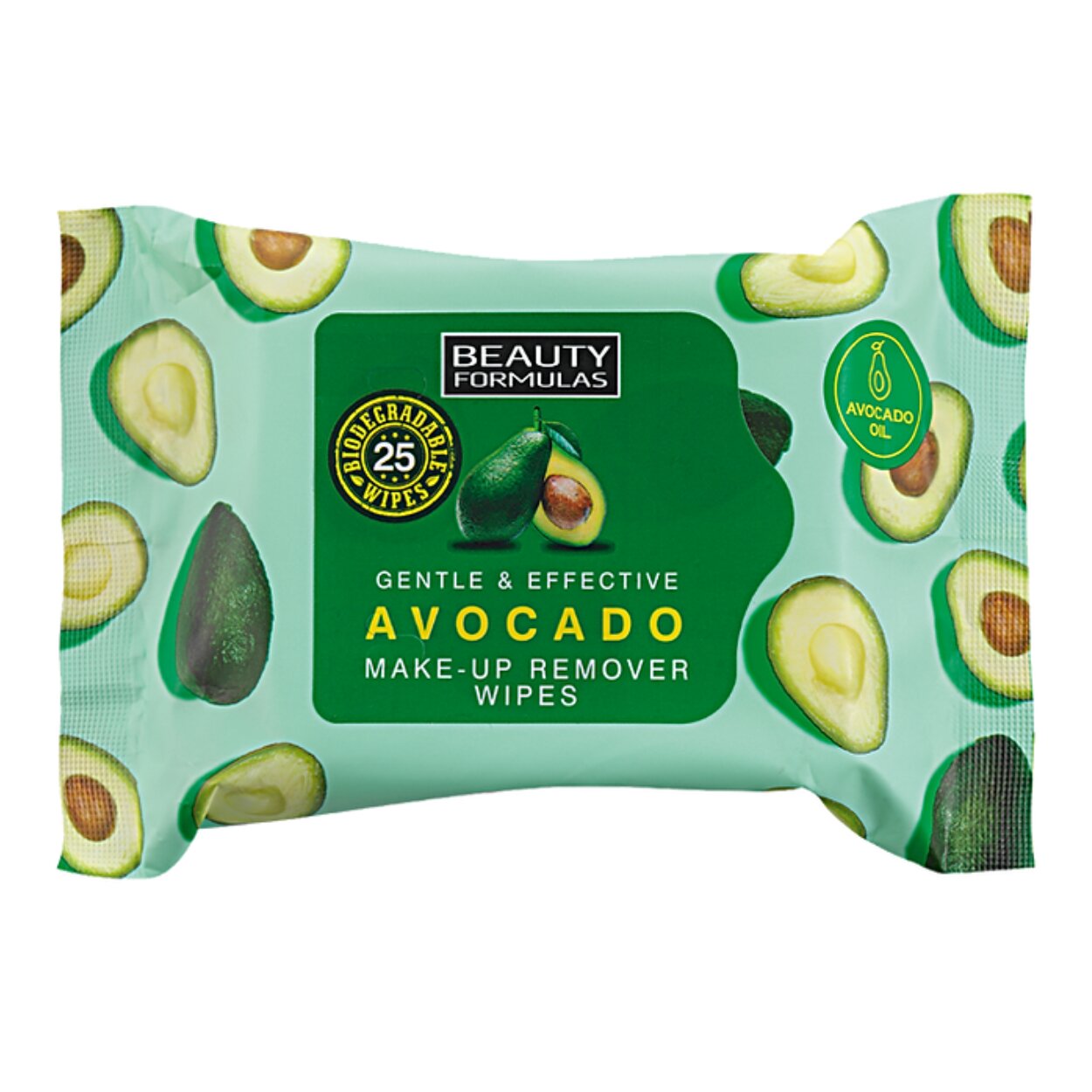 Beauty Formulas Biologicky rozložitelné Odličovací a čistící ubrousky na obličej s Avokádem 25 ks
