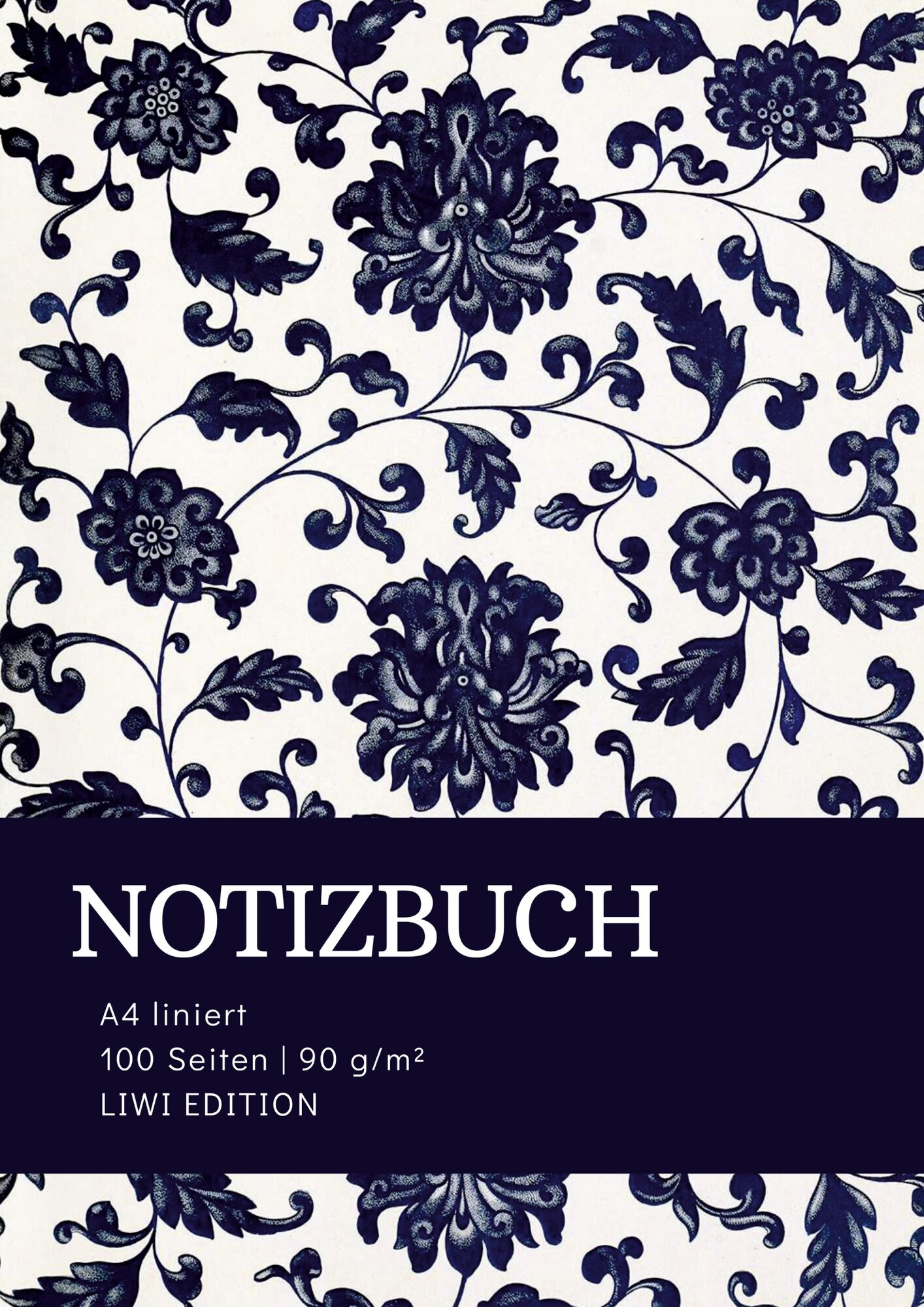 Notizbuch A4 liniert - 100 Seiten Soft Cover - floral blau - FSC Papier