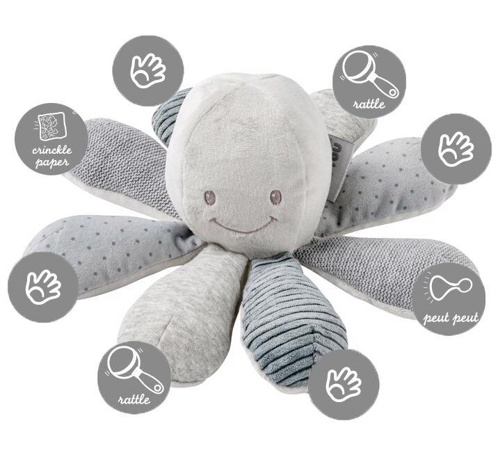 NATTOU Hračka chobotnička edukační 8 aktivit Lapidou grey