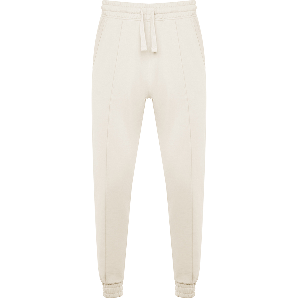 Tepláky rovného střihu s manžetami na nohavicích. Nastavitelný elastický pas pomocí stahovací šňůrky. Dvě kapsy. weiter lesen
