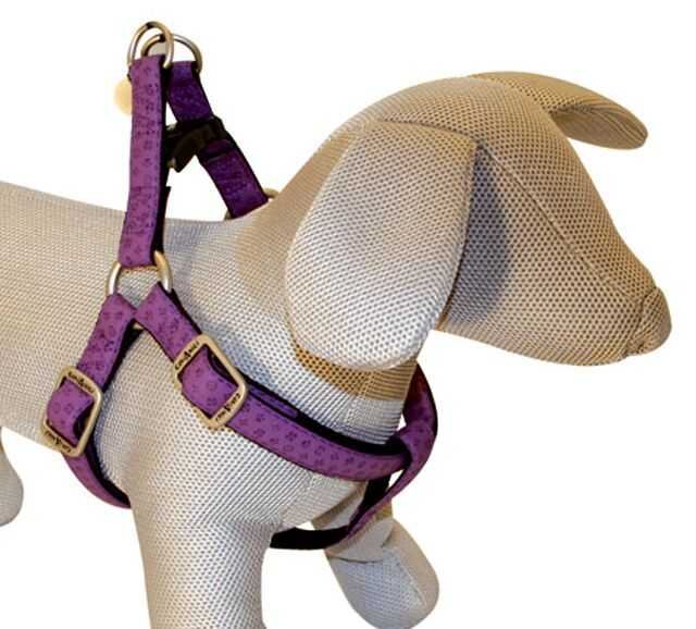 Kožený postroj fialové barvy s celopotiskem, podšitý jemným nylonem ve stejné barvě.• velice měkká příjemná imitace kůže• celopotisk obrázků pacek, čtyřlístků a koleček ve stylu "Louis Vuitton"• snadné a rychlé zapínání pomocí umělohmotné spony• nastavitelné pro maximální pohodlí• upínací kroužky...
