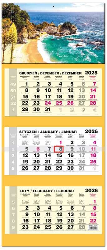 Kalendarz trójdzielny Lux Kalifornia 2026, Ev-Corp (polnischer)