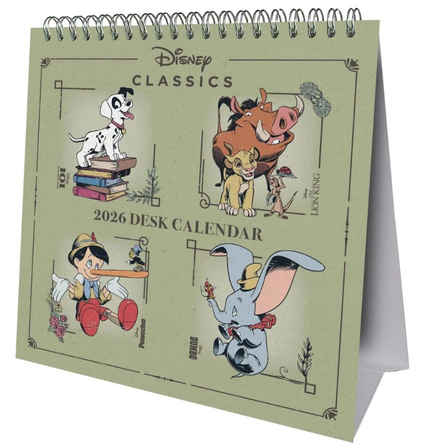 Oficiální produkt - stolní kalendář studia Disney na rok 2026 s licencí postaviček tradičních dětských animovaných filmů. Zboží je legálně licencováno a prodáváno se souhlasem vlastníků licenčních práv. Kalendář obsahuje výhradně schválené, autorizované obrázky.Dvanáctiměsíční otáčecí stolní...