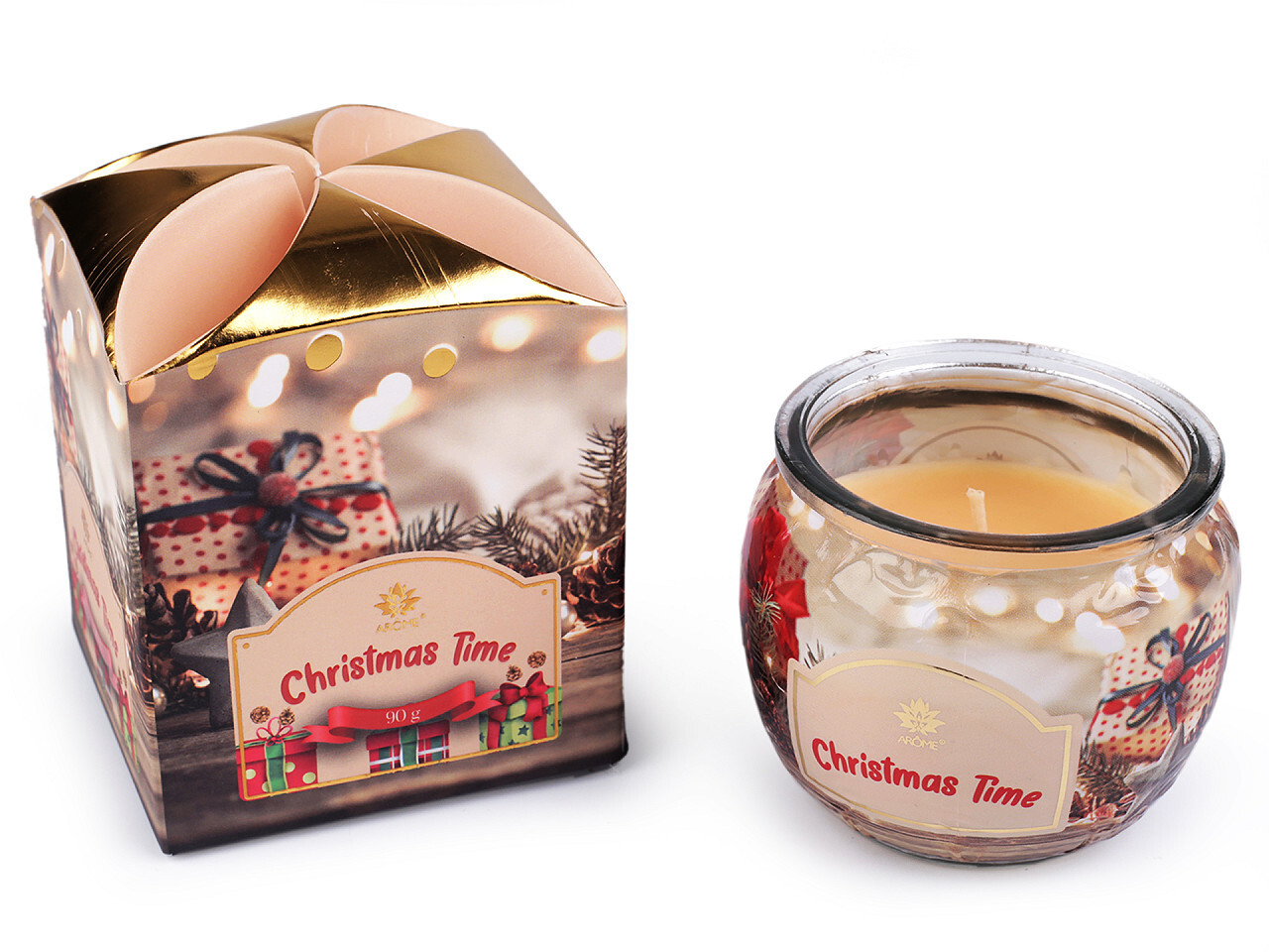 Vonná svíčka ve skle 90 g - 12 ks - 3 (Christmas Time) krémová