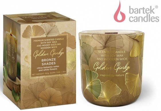 Vonná svíčka ve skle 150g dřevěný knot Golden Ginko - Bronze Shades je součástí kolekce polské značky Bartek Candles weiter lesen
