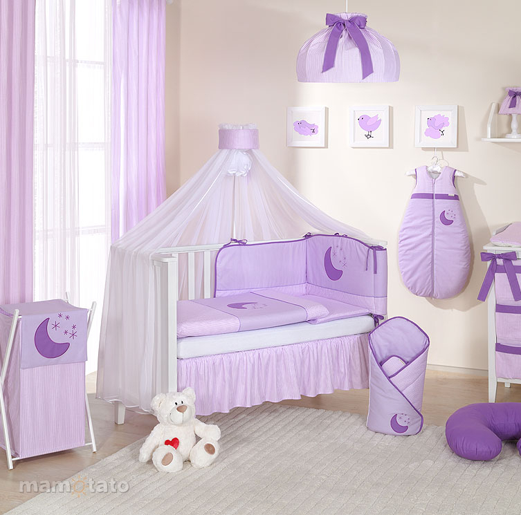 Moskytiéra na postýlku - bílá, šerpa fialové proužky