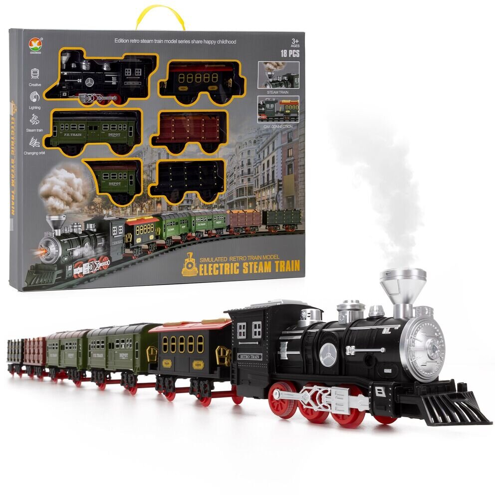 Elektrická parní lokomotiva se 4 vagóny přináší neuvěřitelně realistický herní zážitek plný pohybu a zvuků. Dálkové ovládání, realistické zvuky a stoupající pára z komína věrně napodobují jízdu skutečného vlaku. Vagóny se snadno spojují pomocí háků. Vyrobena z bezpečných, certifikovaných...