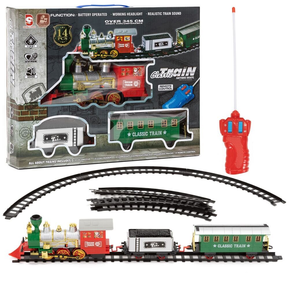 Elektrická parní lokomotiva s vagóny přináší neuvěřitelně realistický herní zážitek plný pohybu a zvuků. Dálkové ovládání, realistické zvuky a stoupající pára z komína věrně napodobují skutečný parní vlak. Vagóny se snadno spojují pomocí háků. Vyrobeno z bezpečných, certifikovaných materiálů, 100...