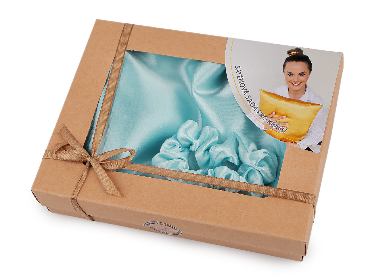 Sada na spaní, saténový povlak na polštář a gumička - 1 ks - 23 tyrkys