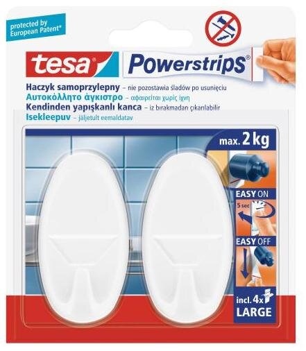 Haczyk Powerstrips okrągły duży, biały 2szt., Tesa