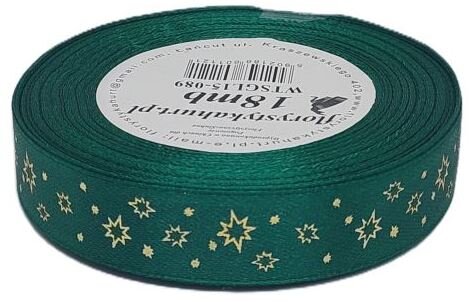 Wstążka metal Gwiazdki, 15mm/18mb, butelka/złoto, Florystyka