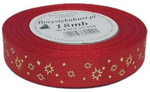 Wstążka metal Gwiazdki, 15mm/18mb, czerwona/złoto, Florystyka