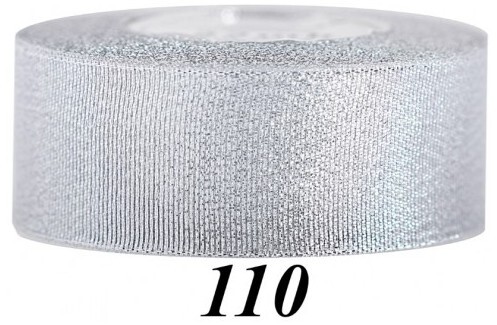 Wstążka brokatowa 38mm/22mb, srebrna, Florystyka
