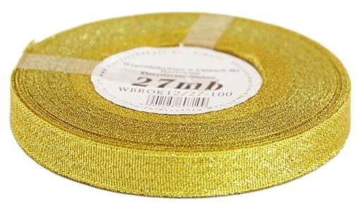Wstążka brokatowa 12mm/27mb, złota, Florystyka