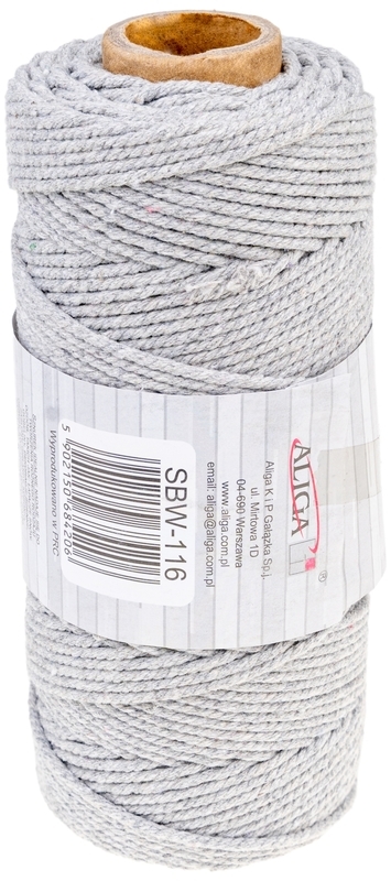 Sznurek bawełniany 3mm x 100m szary SBW-116,splot 21 nitek, Aliga