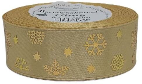 Wstążka metal Śnieżynki, 25mm/18mb, złoto/złoto, Florystyka