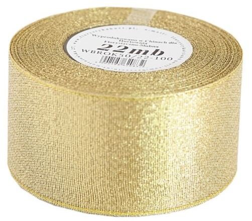 Wstążka brokatowa 50mm/22mb, złota, Florystyka