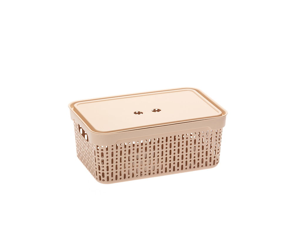 PLASTOVÝ KOŠ S VÍKEM MORSETTA L LATTE -JAG