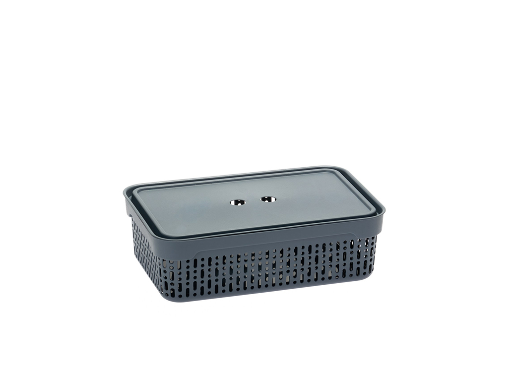 PLASTOVÝ KOŠ S VÍKEM MORSETTA M TMAVĚ ŠEDÝ -JAG
