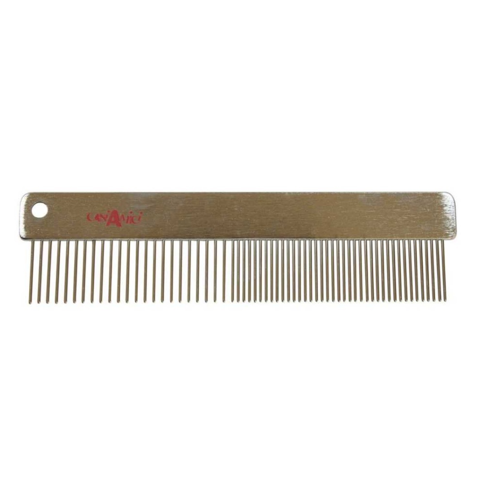 Kovový hřeben Vanity je ideální pro každodenní česání srsti. Odstraňuje odumřelé chlupy a nečistoty, zanechává srst jemnou, sametovou a lesklou. Pomáhá lokalizovat případné uzly a zabraňuje vytváření podmínek příznivých pro usazování blech a parazitů.Zaoblené hroty nepoškozují kůži psa. Díky...
