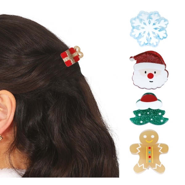 Vánoční sponky do vlasů v sadě pěti různých motivů jsou drobným, ale výrazným doplňkem, který snadno podtrhne sváteční atmosféru. V balení najdete symboly Vánoc – sněhovou vločku, Santu, vánoční stromeček, perníčka a dáreček. Sponky mají kompaktní velikost 3 cm a díky pevné kovové konstrukci drží...