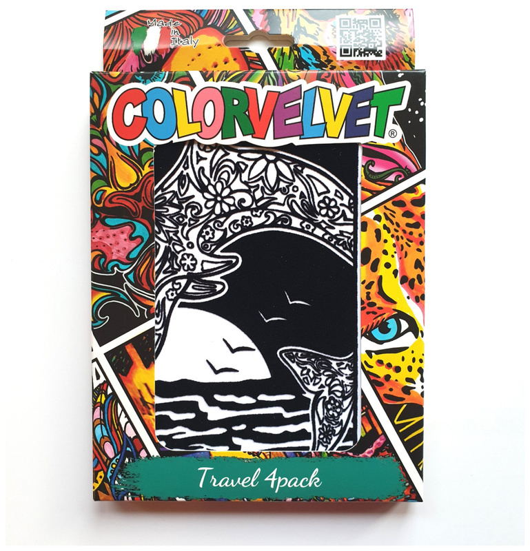 Zestaw 4 małych kolorowanek welwetowych wraz z flamastrami - idealny towarzysz podróży.Kolorowanki z welwetowymi w dotyku konturami (pokrytymi czarnym welurem). Wypukłe linie ułatwiają nie wychodzenie za linie, a na głębokiej matowej czerni nie widać drobnych potknięć przy kolorowaniu.Specjalny...