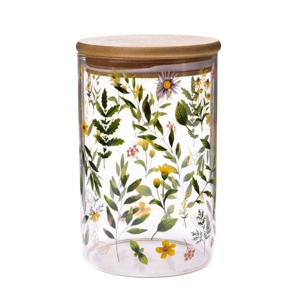 Skleněná doza s bambusovým víčkem - luční květy, 840ml, 2/24