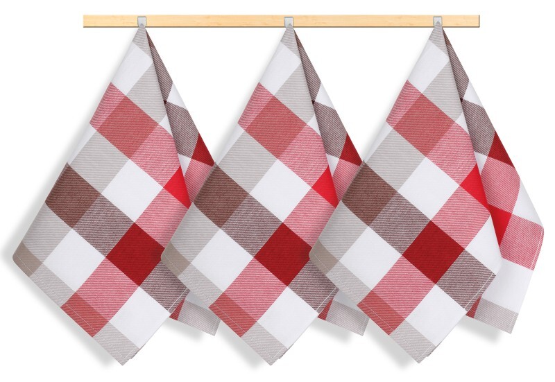 Kuchyňské utěrky - sada 3 kusů - Červená,Bordová,Bílá - 50x70 cm