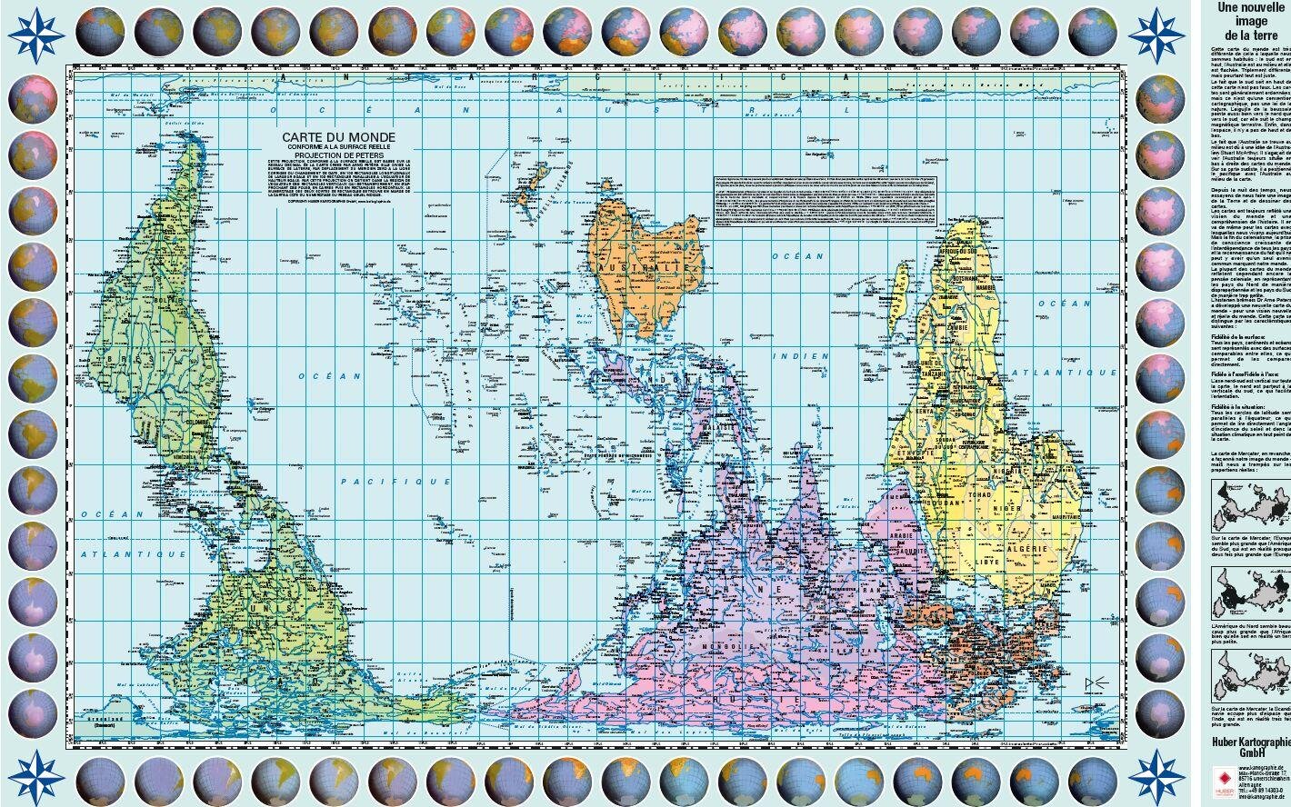 Weltkarte Petersprojektion, südorientiert und pazifikzentriert, französisch (130 x 82 cm) (französische(r))