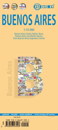 Unsere folienbeschichtete, gefaltete Karte von Buenos Aires. Diese Auflage beinhaltet: Buenos Aires Zentrum 1:15 000, Isla Martín Garcia 1:18 000, Núnez 1:15 000, Boca 1:15 000, Buenos Aires 1:75 000, Großraum Buenos Aires 1:530 000, den zentralen Teil Argentiniens 1:300 000, das öffentliche...