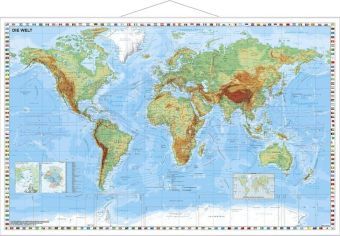 Stiefel Wandkarte Kleinformat Die Welt, physisch, mit Metallstäben