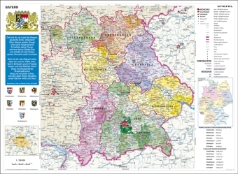 Stiefel Wandkarte Kleinformat Bayern, politisch mit Postleitzahlen, ohne Metallstäbe