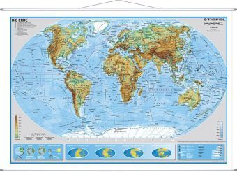Stiefel Wandkarte Kleinformat Die Erde, physisch, mit Metallstäben