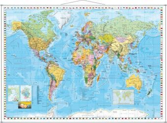 Stiefel Wandkarte Großformat Weltkarte, politisch mit Flaggenrand, englische Ausgabe, mit Metallstäben (englische(r) )