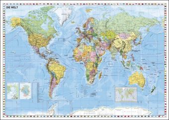Stiefel Wandkarte Kleinformat Weltkarte politisch, deutschsprachig, ohne Metallstäbe