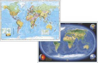 Stiefel Welt politisch mit Flaggenrand, englische Ausgabe. Stiefel Erde Panorama, DUO-Schreibunterlage