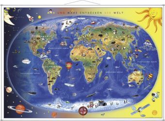 Kinderweltkarte, Lernposter mit Metallbeleistung