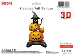 Balon foliowy stojący 3D - Dynie z czarnym kotem, 140x68 cmDuży balon foliowy 3D w formie stojącej dekoracji z motywem halloweenowych dyń i czarnego kota. Idealny jako efektowna ozdoba na Halloween, imprezy tematyczne, eventy oraz dekoracje witryn. Przeznaczony do napełniania powietrzem,... weiter lesen