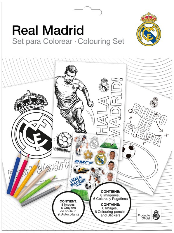 Zestaw do kolorowania, 6 kredek, naklejki, 8 kartek Real Madrid, Kids