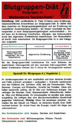 Blutgruppen-Diät - Blutgruppe A, Medizinische Taschen-Karte